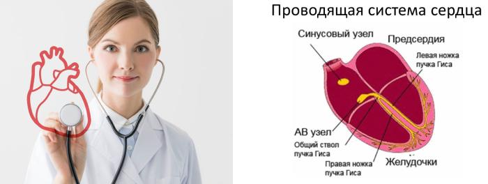 Электрический импульс формируется в синусовом узле, проходит через ткани предсердий, затем через атриовентрикулярный узел достигает желудочков по волокнам пучка Гиса. Если возникает препятствие на каком-то из этих путей, то это приводит к замедлению или полной блокаде передачи.