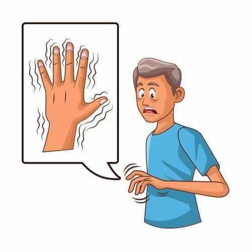 - Тремор. Выражается в дрожании конечностей в состоянии покоя.