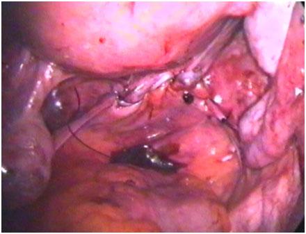 Рис. 3. Законченный вид ушитой тазовой брюшины. Полностью восстановлена анатомия органов малого таза.