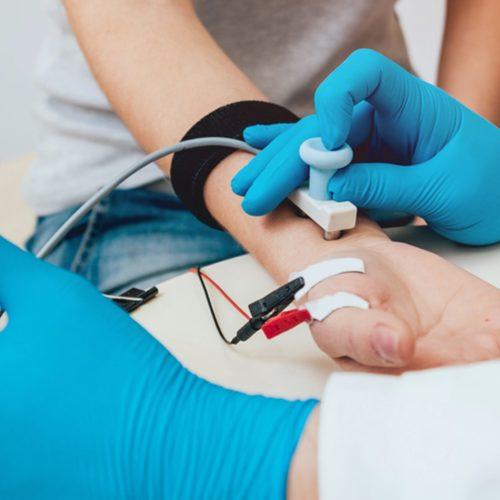 Электронейромиография (ЭНМГ) и электромиография (ЭМГ) — это диагностические процедуры, позволяющие анализировать функционирование нервно-мышечной системы. Используя данные методы, возможно определить наличие повреждений нерва, его локализацию и степень повреждения, а Выявить нарушения в работе нервного сплетения и диагностировать патологии мышц.