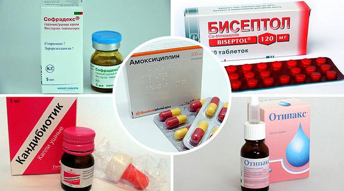Для устранения местных симптомов отита применяются противоотечные, антибиотические и противовоспалительные препараты. Поскольку активные вещества являются токсичными, их нельзя использовать в лечении беременных. Поэтому в терапии могут применяться такие медикаменты: