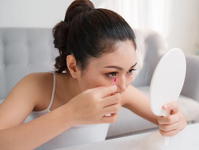 - Избегайте использования агрессивных или небезопасных химических средств. Важно выбирать продукты, предназначенные специально для удаления макияжа с глаз или клея с ресниц. Химически активные вещества могут вызвать раздражение чувствительной кожи вокруг глаз.