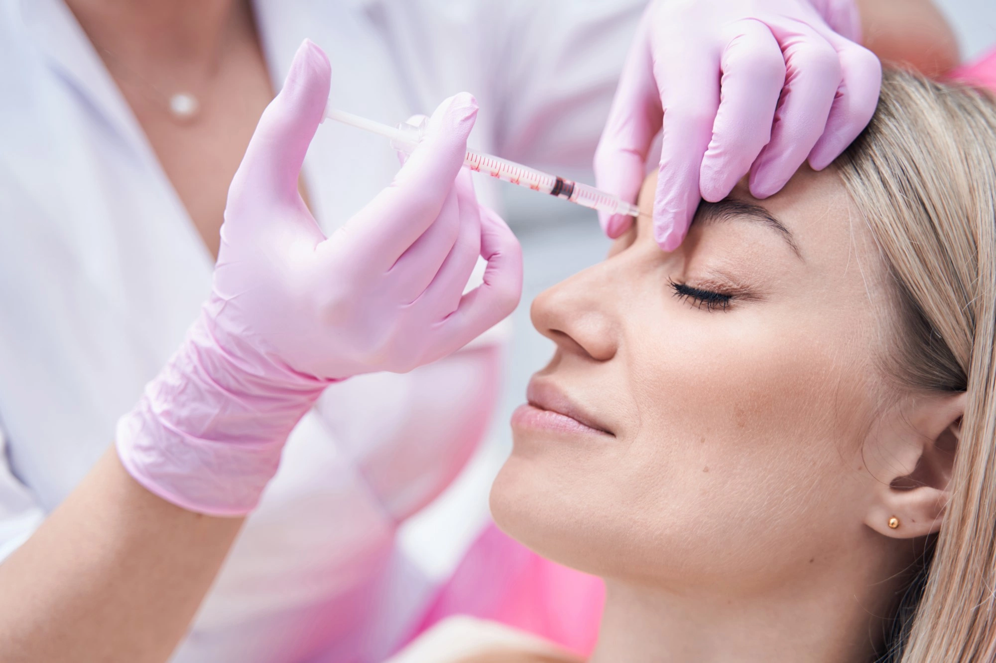 - Инъекции ботулотоксина, которые блокируют нервную проводимость, приводя к расслаблению мышц в области лба и бровей;