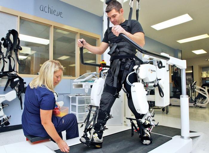 Устройство компенсирует мышечную атрофию или паралич, позволяя человеку передвигать нижние конечности самостоятельно. Такую технологию активно применяют в реабилитационных центрах США.