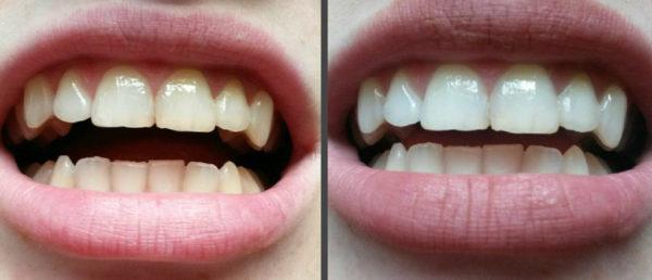 С их помощью эмаль может светлеть до 5 тонов. Они эффективно удаляют налёт от кофе и чая, а также пигментные пятна и желтизну эмали.