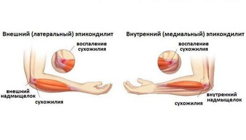 Здесь показана область воспаления при медиальном и латеральном эпикондилите.