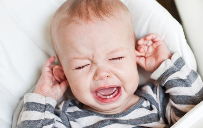 Даже если малыш просто проявляет беспокойство, вертит головой и плачет, это может быть признаком отита.
