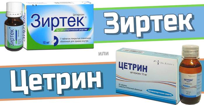 | Цетрин (в таблетках) | Зиртек (в таблетках) | Цетрин (в сиропе) | Зиртек (в каплях) |