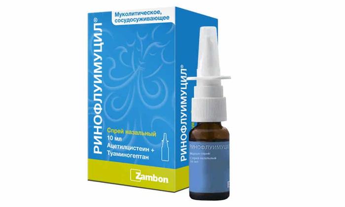 | Ринофлуимуцил (аэрозоль) | туаминогептан и ацетилцистеин | неделя |