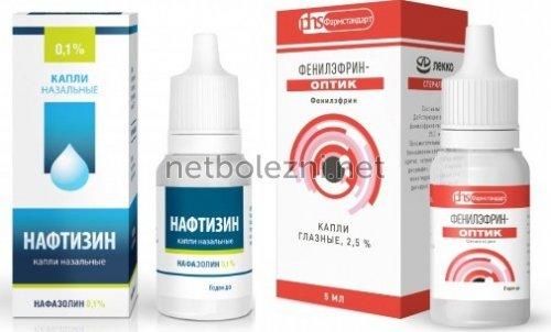 Назальные капли, содержащие фенилэфрин, сочетаются с другим сосудосуживающим средством – леримазолином. Эти препараты производятся в Сербии и доступны в форме капель для детей, а В версии с повышенной концентрацией фенилэфрина для взрослых.