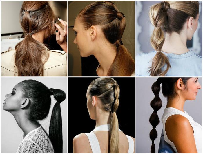 На волосах средней длины хорошо выглядит хвост, украшенный резинками. Такой стиль укладки нечасто встретишь, и в этом его особенность. Изготовить такую прическу довольно просто: