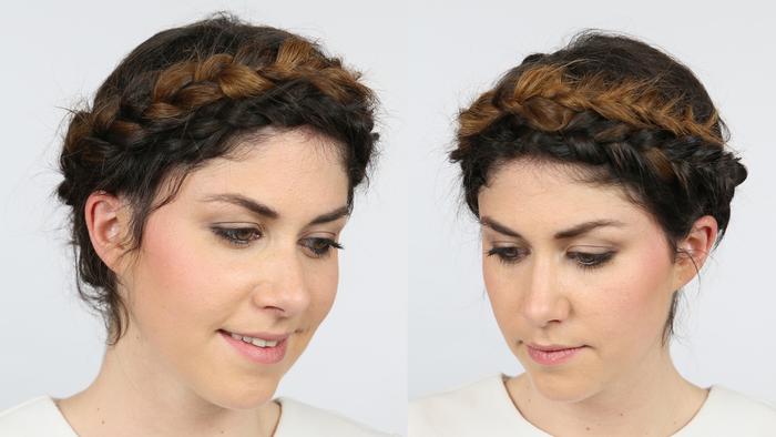 - Обверните косы вокруг головы, закрепив кончики невидимками.