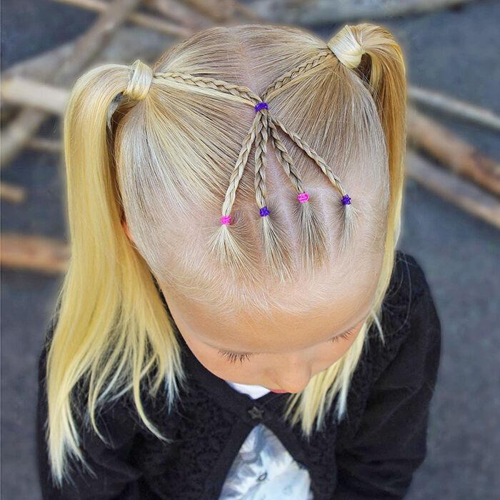Если вы любите поспать лишние пять минут утром, вот идеальная легкая прическа для каждого дня. Обычные хвосты, но с маленькими косичками, на которые обратят внимание все вокруг! Девочка будет в центре внимания за свою стильность.