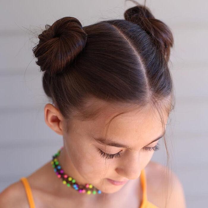 У этой укладки множество вариантов: можно сделать пучки только из части волос, остальные распустить, или заплести косички и заколоть их — это тоже будет отлично смотреться в школе.