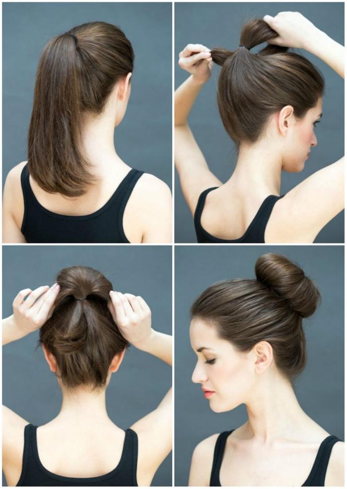 - Когда все волосы будут собраны в хвост, сделайте из него пучок.