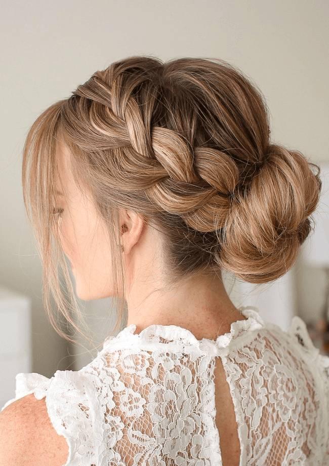 Длинные волосы дают возможность создавать множество укладок. Мы предлагаем вам поэкспериментировать с эффектной прической — пучком с французской косой: