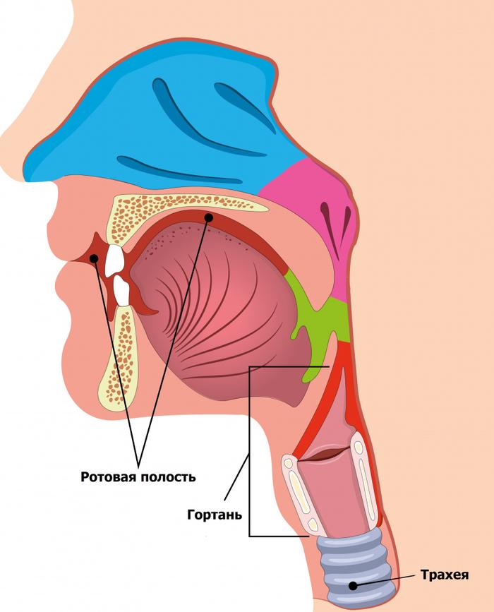 Воздух проходит через гортань, а звук формируется благодаря складкам слизистой – голосовым связкам.