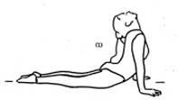 1. Лягте на живот и поставьте ладони на пол под плечами. Ноги держите вместе. Прогнитесь, принимая позу кобры. Щиколотки должны касаться пола. Поднимите подбородок и взгляните вверх на точку на потолке.