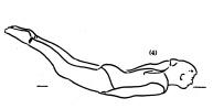 4. Лягте на живот, положив кулаки в паховые складки. Подбородок на полу, пятки вместе. Поднимите ноги максимально высоко.