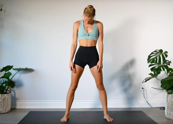 - При наклонах к ногам старайтесь держать спину ровно, а тянуться животом к бедрам.