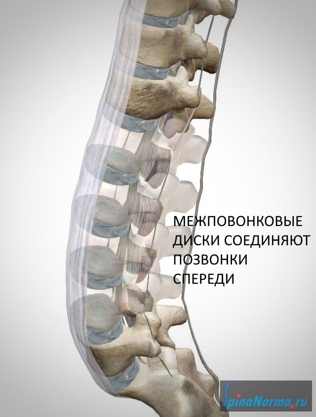 Основное предназначение дисков – смягчение статических и динамических нагрузок, возникающих при физических действиях. Диски также соединяют тело позвонков между собой.