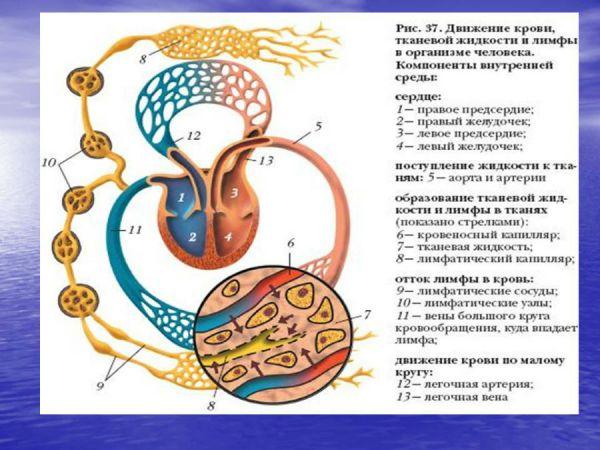 - исполняет роль связующего звена между кровеносной и лимфатической системами, а также между органами и тканями;